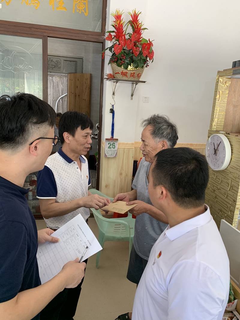 走訪中,方妙雙一行深入貧困戶家里,傾聽抗洪救災(zāi)后患病的黨員陳鎮(zhèn)周家屬、參加抗越戰(zhàn)爭的老黨員陳木樹、參加抗美援朝戰(zhàn)爭的陳木林等心聲,送上慰問金,感謝他們?yōu)辄h的建設(shè)發(fā)展作出的積極奉獻,并鼓勵其振奮精神,勇于面對生活的困難,繼續(xù)發(fā)揮模范作用,以新?lián)?dāng)新作為帶動農(nóng)村振興。