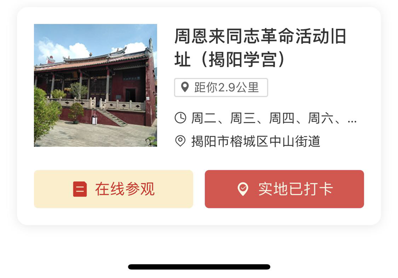 “粵學(xué)黨史·粵愛黨---打卡廣東紅”小程序采用線下實地打卡。