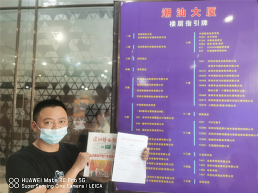 揭陽市金葉發(fā)展有限公司于2022年5月25日派員到達深圳市羅湖區(qū)春風路潮汕大廈五樓(即原深圳榕鵬實業(yè)公司注冊地址),辦理催款函送達。