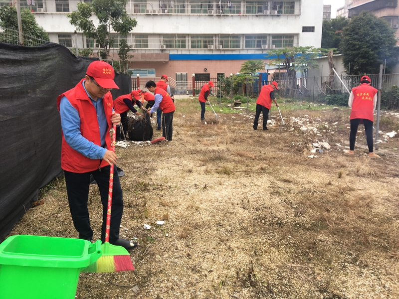 活動于14:30分開始,志愿者們穿上“紅馬甲”,拿起掃帚、鐵鏟等工具,大家分工協(xié)作,有的扒雜草、有的掃垃圾、有的撿泡沫垃圾、有的負責垃圾裝袋……經(jīng)過2個鐘頭的埋頭苦干,空地面貌煥然一新,衛(wèi)生環(huán)境得到明顯改善。