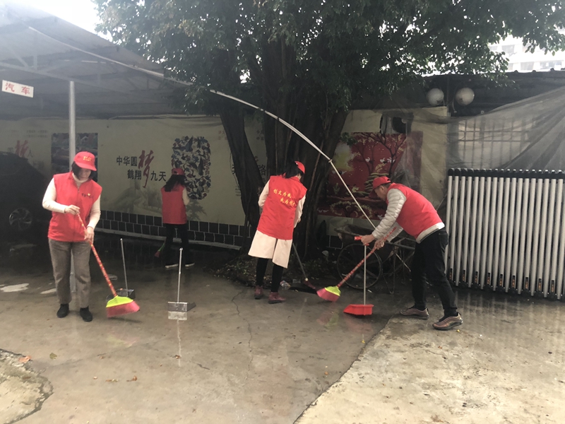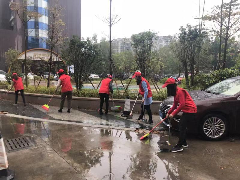 3月5日下午,天下著毛毛雨,志愿者們身著紅馬甲,拿著掃把、靶子等工具,對停車場、小公園地面的落葉、雜物進行全面清掃,對一些死角進行清除。志愿者們不怕冷,不怕累,經(jīng)過長達2個小時的努力,把小公園及停車場打掃得干干凈凈。